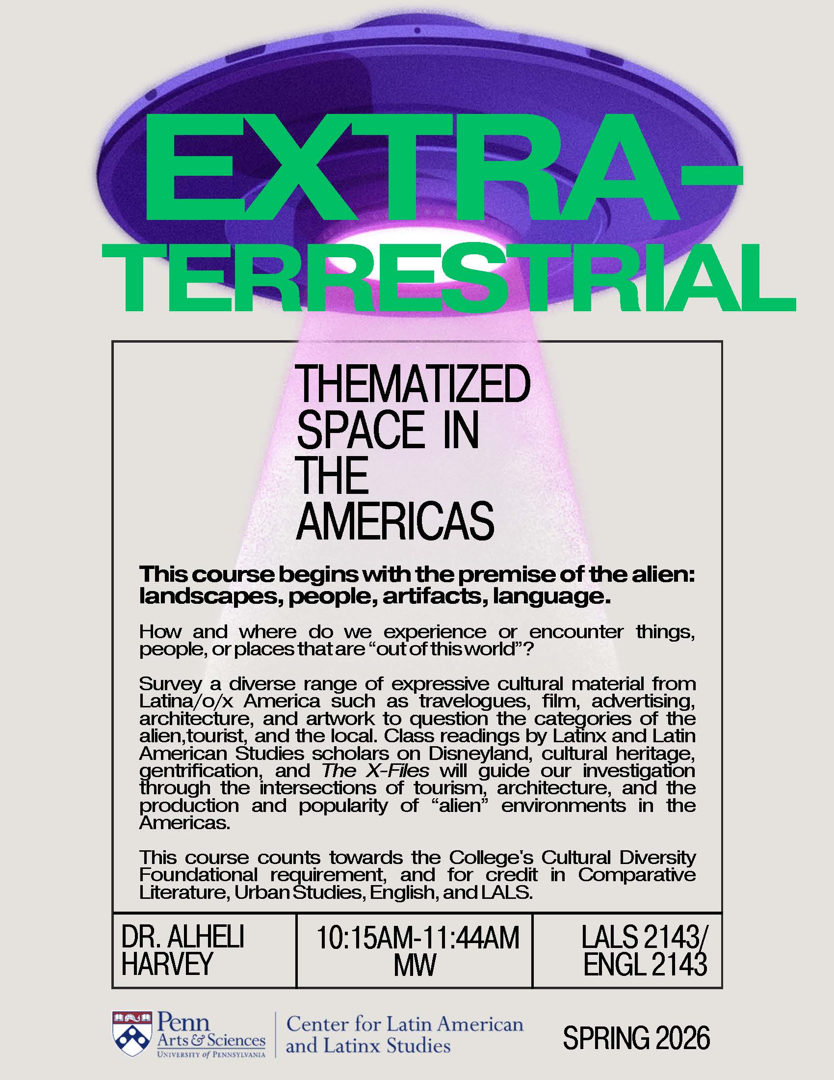 We hope you consider taking this exciting new course offered by Alhelí Harvey - Extra-Terrestial: Thematized Space in the Americas.